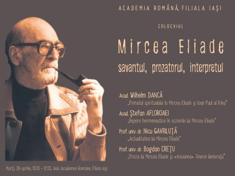 Cu ocazia împlinirii a 40 de ani de la moartea lui Mircea Eliade, doi academicieni (Wilhelm Dancă și Ștefan Afloroaei), împreună cu un profesor al Facultății de Filosofie și Științe Social-Politice din cadrul Universității ,,Alexandru Ioan Cuza” din Iași (Nicu Gavriluță) și un profesor al Facultății de Litere din cadrul aceleași universități (Bogdan Crețu), vor prezenta la Filiala Iași a Academiei Române comunicări privind savantul, prozatorul și hermeneutul Mircea Eliade.